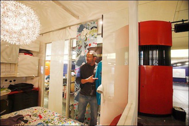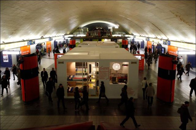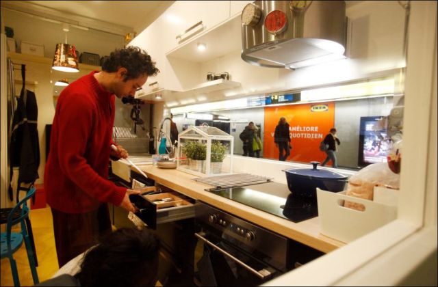 Πέντε Παριζιάνοι έζησαν για 6 μέρες σε ένα λυόμενο 54 τ.μ. μέσα σε σταθμό μετρό της γαλλικής πρωτεύουσας. Οι περαστικοί μπορούσαν να παρακολουθούν κάθε δραστηριότητα των πέντε καθώς οι τοίχοι του διαμερίσματος ήταν γυάλινοι. Το σκηνικό αυτό στήθηκε στα πλαίσια της προώθησης προϊόντων εταιρείας επίπλων.