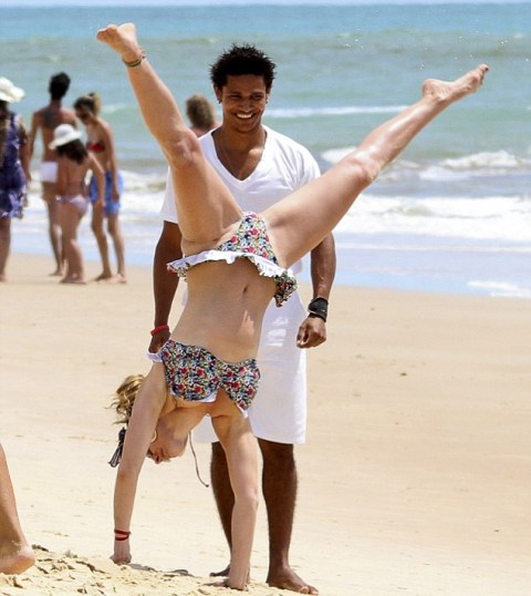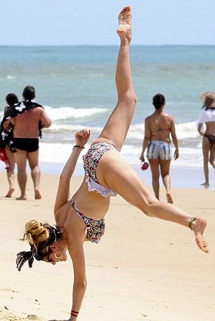 Το διάσημο μοντέλο φορώντας ένα σέξι και αποκαλυπτικό μπικίνι ξεδίπλωσε όλο το ταλέντο της στη γυμναστική κάνοντας τους λουόμενους να τραυλίζουν.