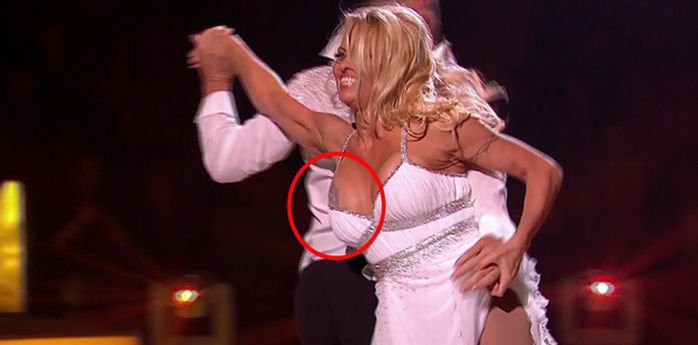 Όχι μόνο χόρεψε άθλια στο πρώτο live, με το παρτενέρ της να την σηκώνει στα χέρια κάθε φορά που πήγαινε να πέσει, αλλά κάποια στιγμή είδε και το δεξί της στήθος να ξεπροβάλλει μέσα από την στενή τουαλέτα που είχε επιλέξει να φορέσει.