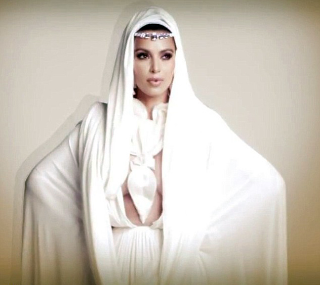 Η γνωστή τηλεπερσόνα δεν διστάζει να κάνει μια τέτοια αποακαλυπτική φωτογράφηση σε μια χώρα κατά βάση συντηρητική. Στη συνέχεια η Kim φωτογραφίζεται σαν μια άλλη πριγκίπισσα της Αραβίας, φορώντας κοσμήματα στο κεφάλι της.