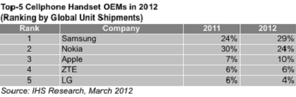 Η έρευνα της IHS δείχνει πως η Samsung θα καταφέρει να διπλασιάσει αυτή τη διαφορά από τους ανταγωνιστές της στο διάστημα 2012-2013.
