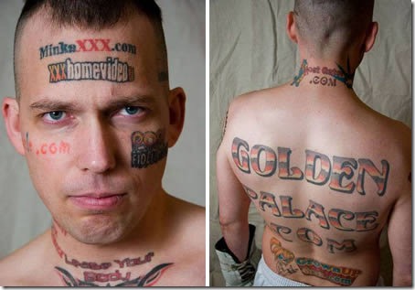 --> Αυτό, βέβαια, απέχει πολύ από το να γεμίσεις το πρόσωπό σου με τατουάζ από διευθύνσεις ιστοσελίδων πορνογραφικού περιεχομένου. Εκτός κι αν ο λόγος είναι «ιερός». Οπως η σίτιση της οικογένειάς σου.